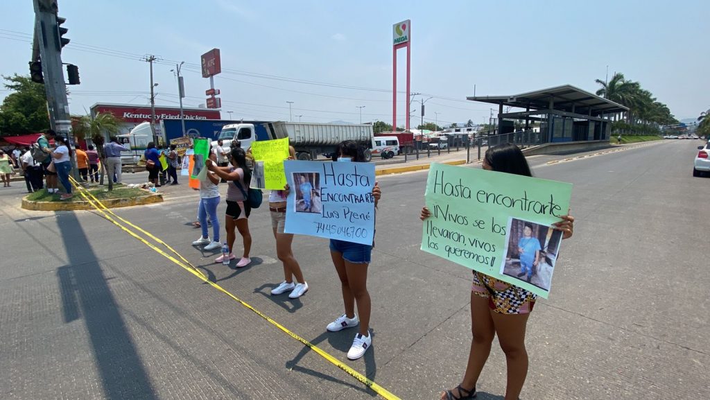 DigitaleZ. Karla Benítez / Acapulco. 24 de mayo.- Familiares de cuatro hombres desaparecidos bloquean el bulevard Vicente Guerrero, en Acapulco, para exigir a las autoridades estatales que desplieguen operativos para encontrarlos.