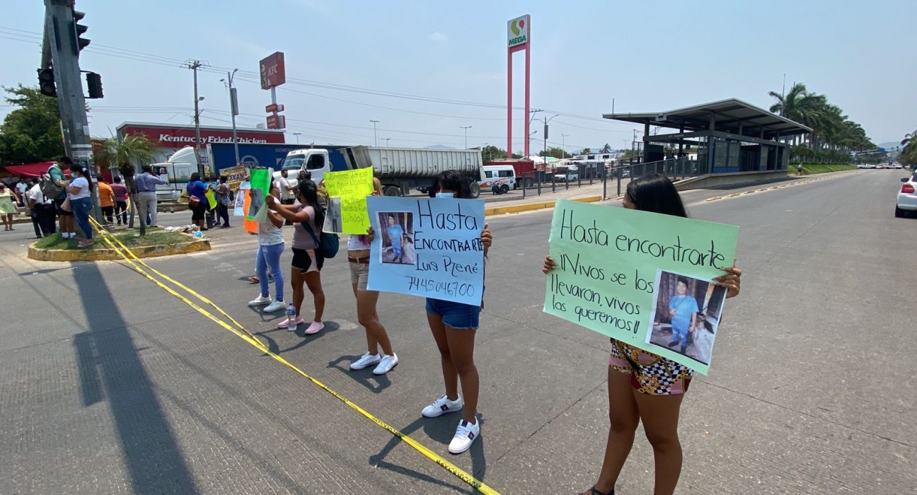 DigitaleZ. Karla Benítez / Acapulco. 24 de mayo.- Familiares de cuatro hombres desaparecidos bloquean el bulevard Vicente Guerrero, en Acapulco, para exigir a las autoridades estatales que desplieguen operativos para encontrarlos.