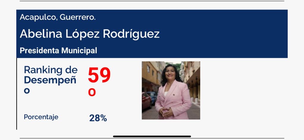 La munícipe de Chilpancingo alcanzó una aprobación a su desempeño del 31 por ciento, tan sólo tres puntos arriba que López Rodríguez.