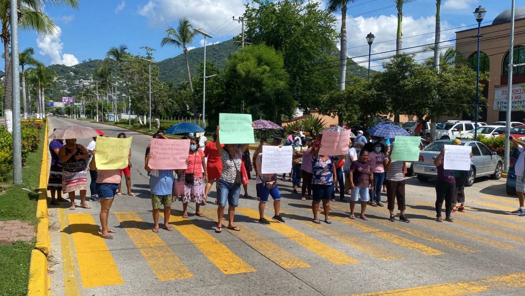 DigitaleZ. Karla Benítez / 15 de agosto.- Adultos mayores y personas con discapacidad bloquean el bulevar de Las Naciones, en Acapulco, para exigir el pago de la pensión que les otorga el gobierno de Guerrero, la cual denunciaron les fue suspendida desde hace dos meses.
