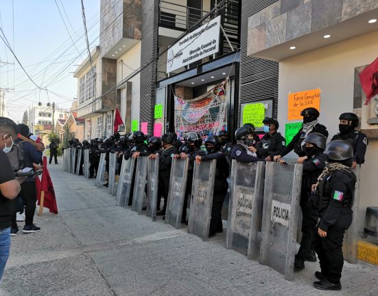 DigitaleZ. Josué Miranda Ventura / Acapulco, Gro., 25 de abril de 2022.- Cerca de 80 policías estatales con equipo antimotin impiden a profesores