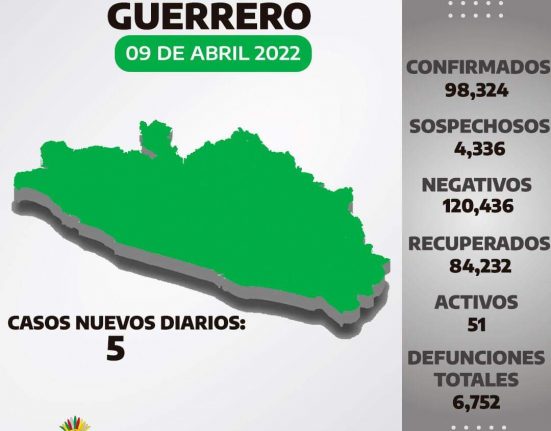 DigitaleZ / Chilpancingo, Gro., 09 de abril 2022.- La Secretaría de Salud estatal informó que al corte del 8 de abril, en Guerrero