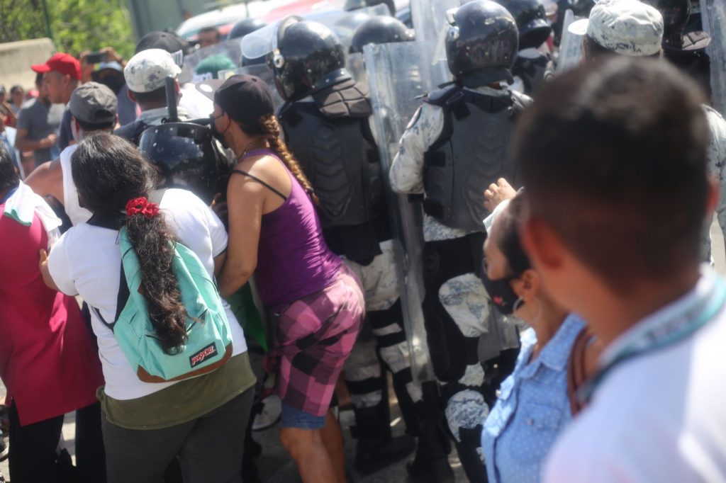 En la acción también reclamaron a los efectivos de la Guardia Nacional quienes habían formado una valla y con sus toletes impedían que los turistas continuaran agrediendo a niños y mujeres.