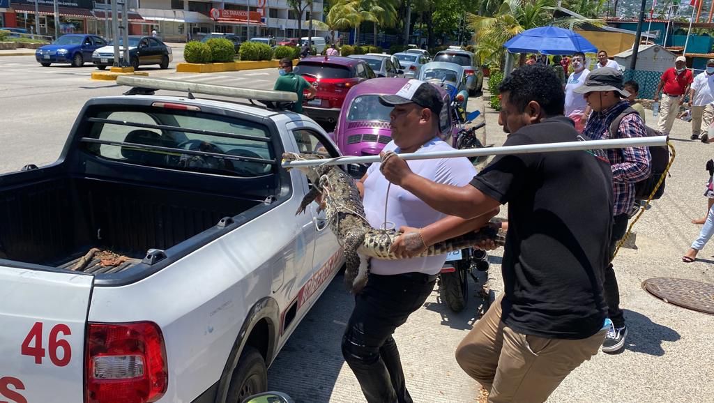 El cocodrilo de aproximadamente un metro de largo fue avistado desde las 09:00 de este miércoles, cerca de las rocas entre las playas Las Hamacas y Dominguillo; sin embargo, los trabajos para capturarlo iniciaron hasta el medio día.