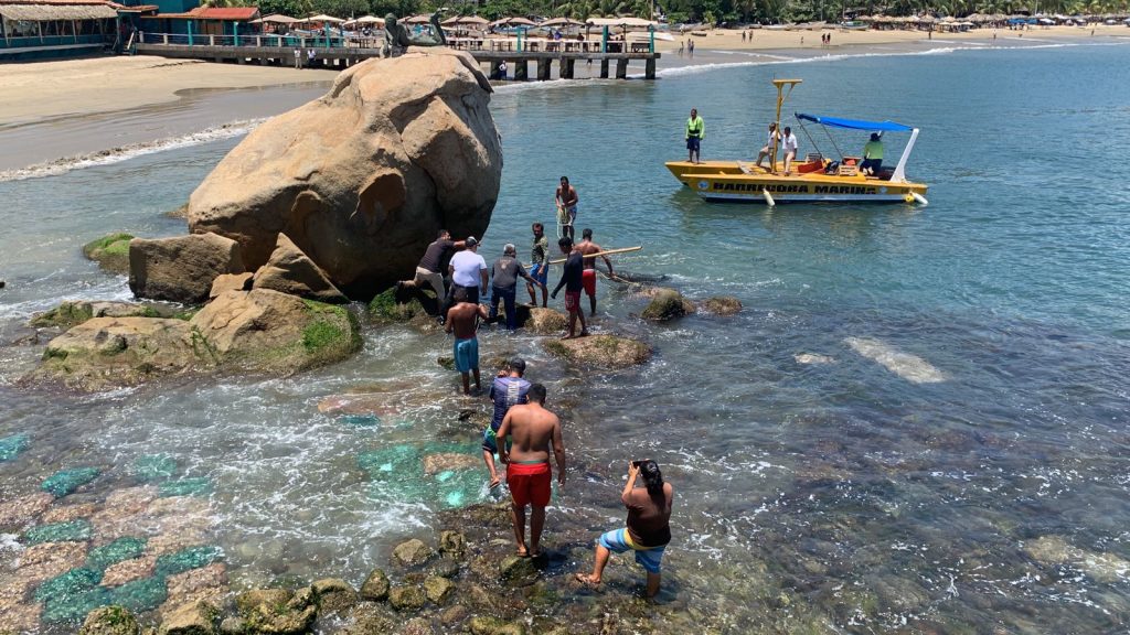 “Ya tenían rato y no podían, lo capturamos nosotros los buzos; porque ya se había visto antes y aquí hay niños, por ellos es que lo reportamos”, dijo Ángel.