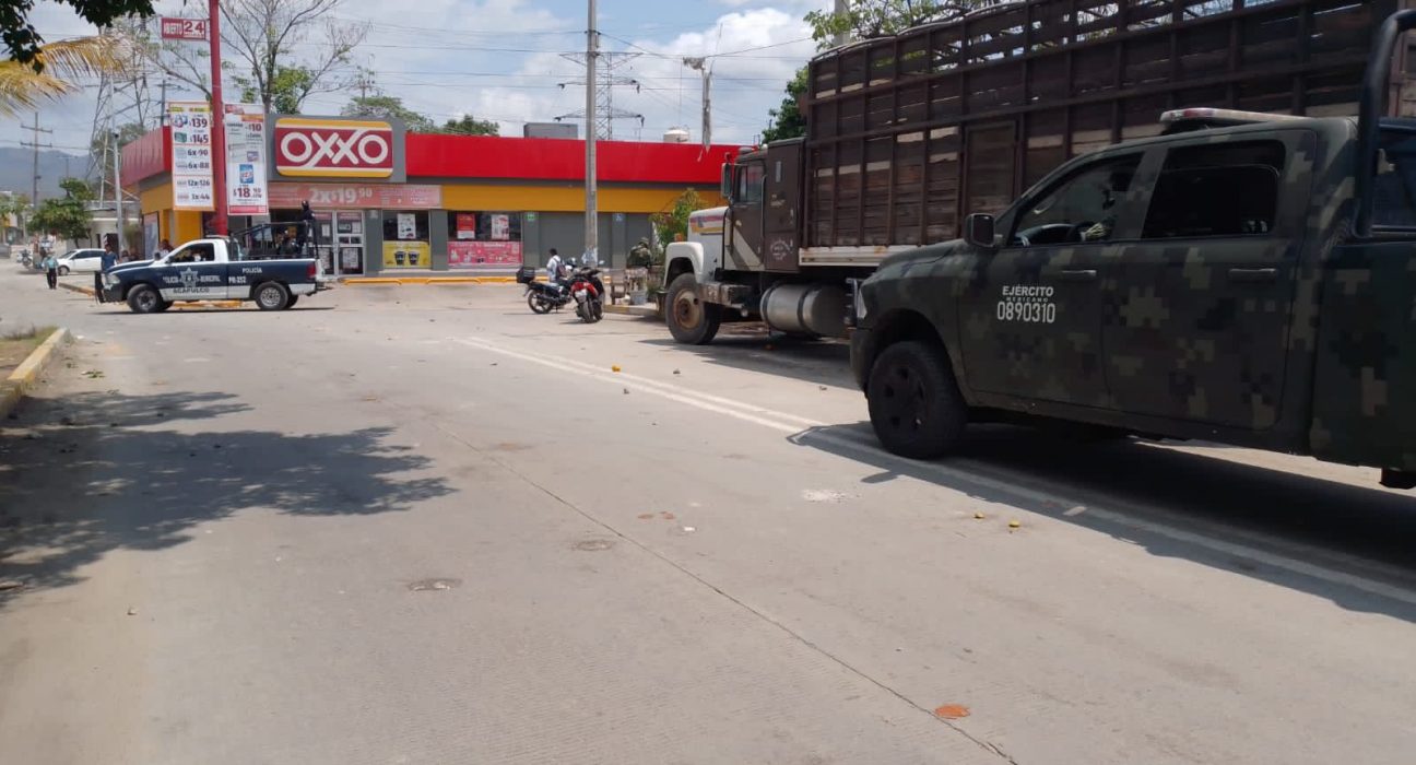 Ahí, frente al Oxxo y la tortillería Central 2, los comerciantes agredieron con palos y frutas a los agentes estatales.