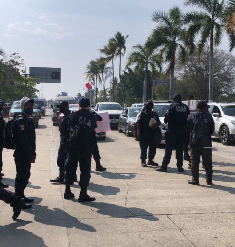 Bloquean policías auxiliares el Boulevard de las Naciones