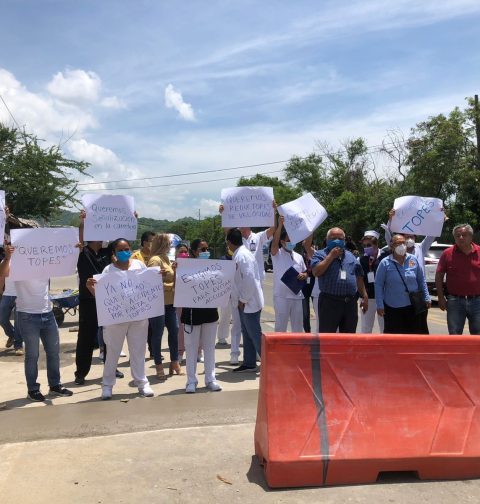 Personal de salud bloquea El Quemado; exigen topes frente al hospital por accidentes