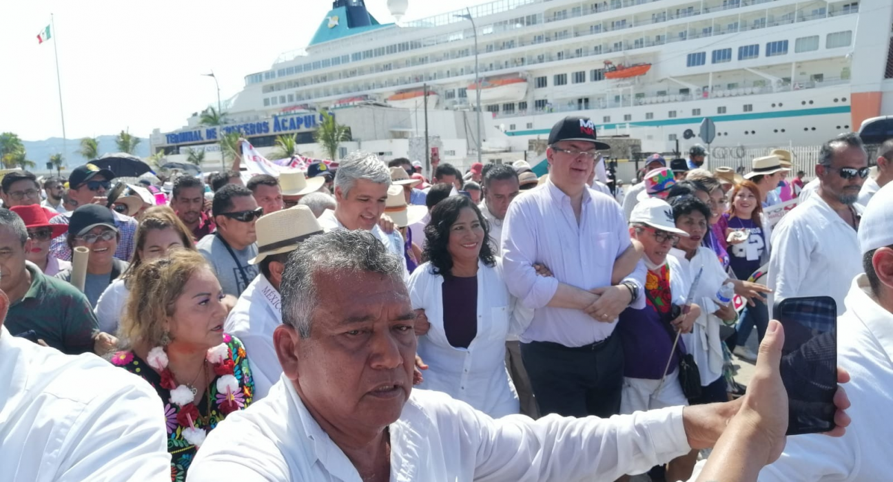 No había demasiado ni de uno ni de lo otro. Caminé sin mayor problema por la acera, buscando identificar los grupos. La maestra Flora, Oswaldo, Edilberto, Sotelo; los esperables, sin embargo ahí me llevé la segunda sorpresa. Aparentemente había un gran ausente en los contingentes: el de Luis Walton, quien se ostenta -sin serlo oficialmente- como el coordinador del movimiento pro Marcelo en el estado. Vi a sus operadores principales -Tapia y alguno mas-, pero del empresario, ni sus luces. ‘Va a llegar alla, o su contingente lo va a esperar en el propio Zócalo’ me dije, sin embargo me pareció al menos curioso, pues el evento estaba planteado como una marcha, por lo que la foto en la descubierta de tal movilización era simbólicamente muy importante.