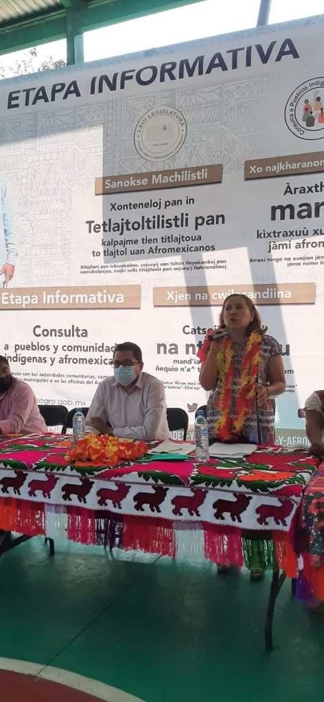 En entrevista, la legisladora reiteró la invitación a los pueblos y comunidades indígenas y afromexicanas de todo el territorio guerrerense para participar en la segunda etapa de la consulta, que consiste en realizar en sus demarcaciones la respectivas asambleas informativas municipales, con la participación de los representantes de las colonias y comunidades, para que decidan de manera libre, previa, informada y de buena fe qué desean quitar, agregar o reformar en las leyes 777 y 701 en materia  de Seguridad y Reconocimiento de Derechos y Cultura de los Pueblos y Comunidades Indígenas y Afromexicanas de Guerrero.
