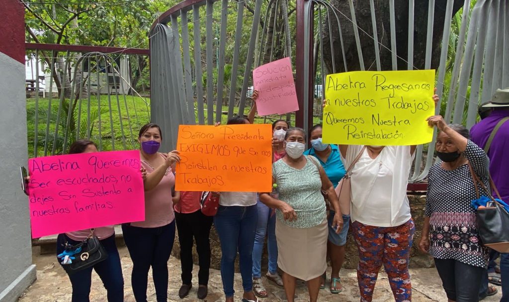 A las 12:00 horas de este día, al menos quince empleadas del área de cocina de La Villa de Las Niñas del DIF se apostaron en la entrada del Ayuntamiento, para denunciar supuestos despidos injustificados de más de cien empleadas supernumerarias y de lista de raya.