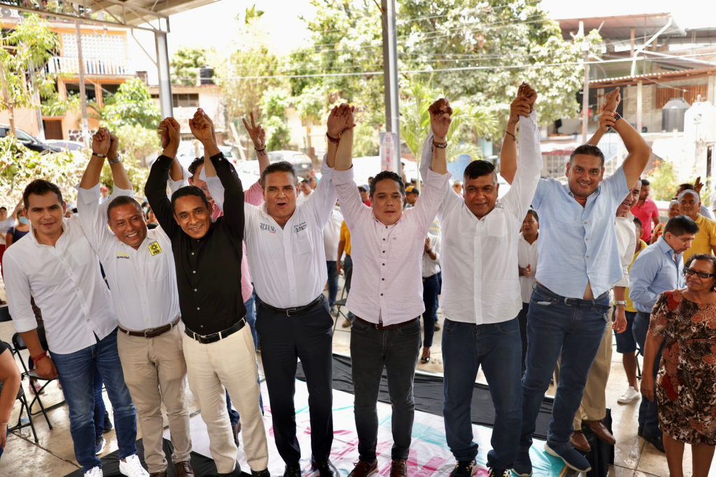 Luego de una gira de trabajo por la colonia Jardín Mangos, donde ambos acudieron para participar en el foro del Pacto de Unidad y Reconciliación ciudadana, promovido por el exalcalde porteño, Aureoles Conejo se trasladó a un salón de la zona Costera donde ofreció una conferencia de prensa acompañado de Velázquez Aguirre, diputados, alcaldes, exalcaldes, líderes sectoriales y dirigentes del PRD.