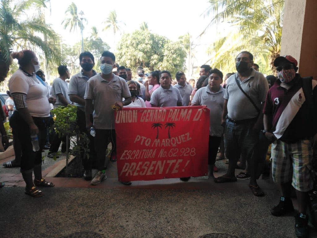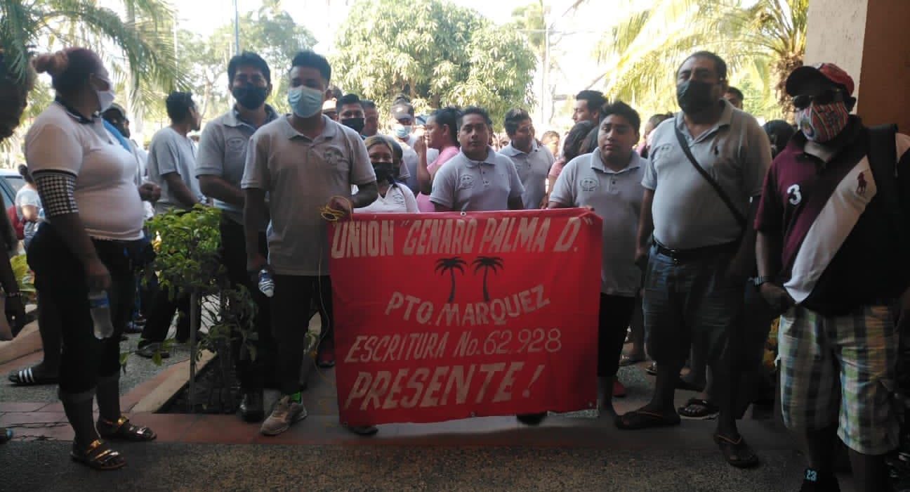 Acapuco, Gro. 06 de abril de 2022. / Karla Benítez / DigitaleZ.- Prestadores de servicios turísticos de Puerto Marqués protestaron en las oficinas de la Promotora Turística (Protur), para exigir avances en la reconstrucción de restaurantes afectados por el muelle de la Marina Majahua.