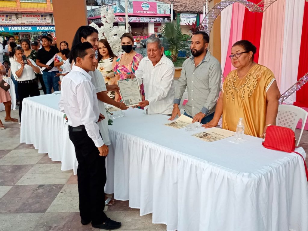 Antes del “casorio”, habló el oficial 04 de San Luis San Pedro, Juventino Hesiquio, para recordarles a los contrayentes que la unión matrimonial es duradera y para toda la vida, porque es el cimiento principal de la familia mexicana, al tiempo de reconocer la labor del presidente municipal Yasir Deloya y de la presidenta del DIF por todo el esfuerzo que hacen día con día para apoyar a las familias tecpanecas.