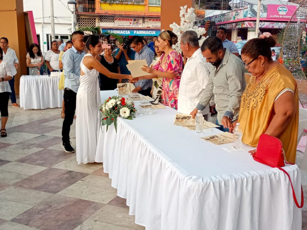 DigitaleZ. Alberto Solís / Tecpan de Galeana, Gro; 12 de febrero de 2023.-Un total de 19 parejas de varias localidades y de la propia cabecera municipal, la tarde de este domingo se dieron el “sí acepto” en pleno zócalo, durante las bodas comunitarias apoyadas por las autoridades municipales por medio del DIF-Tecpan y el Registro Civil.