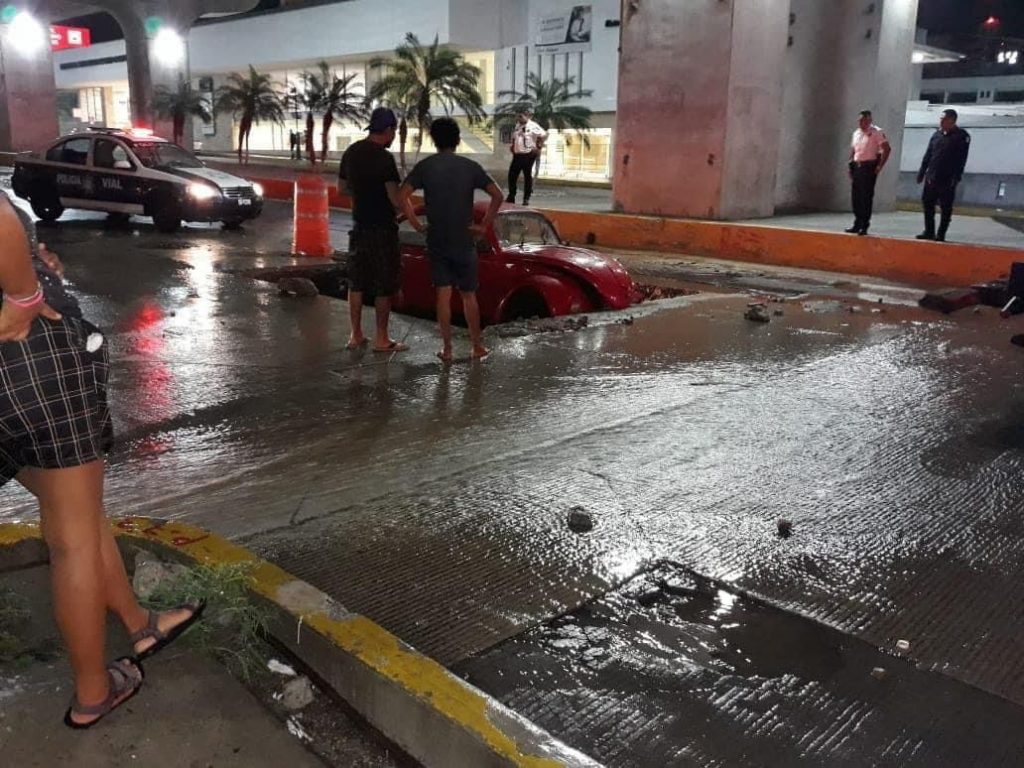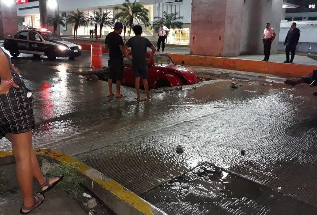 En este cayó un auto rojo y quedó atrapado durante una hora, luego de una hora el automóvil tipo sedan fue liberado.De acuerdo con el Servicio Metereológico Nacional (SMN) se prevén más lluvias de fuertes a puntuales para este miércoles en el estado.
