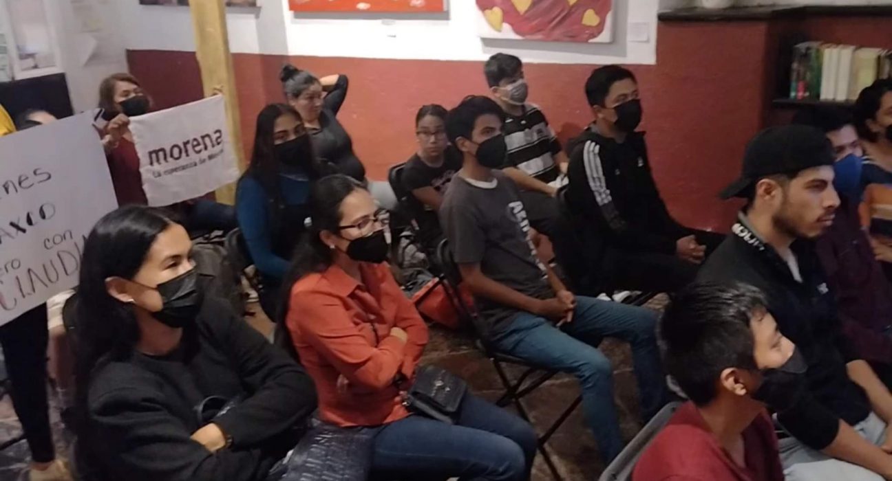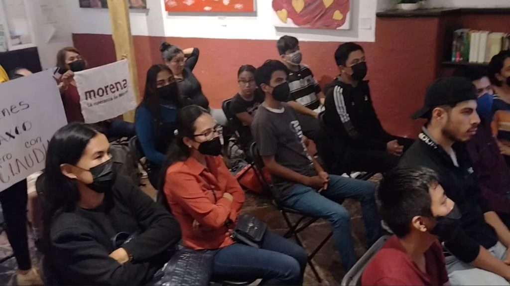 En la sala principal del recinto cultural donde se encuentra el “Túmulo Funerario”, desde hace 30 años considerado como una pieza histórica original del siglo XVIII y que forma parte del patrimonio de los taxqueños, un grupo de jóvenes de Morena participaron en un primer encuentro virtual con Sheinbaum Pardo a quien llamaron “la futura presidenta de México”, donde además anticiparon que posteriormente tendrán una actividad presencial con la aspirante presidencial.
